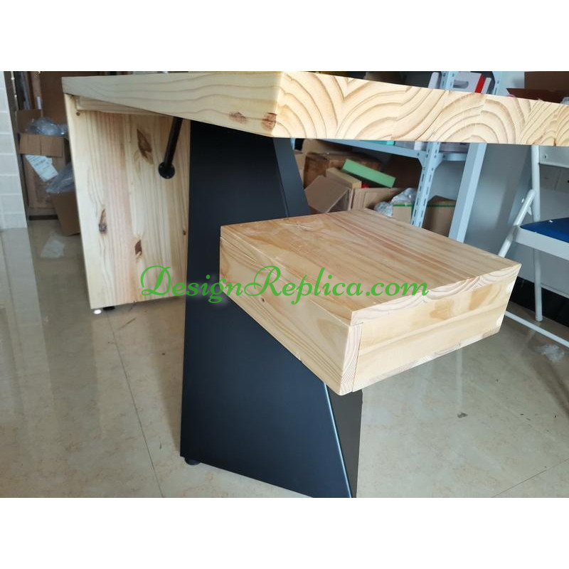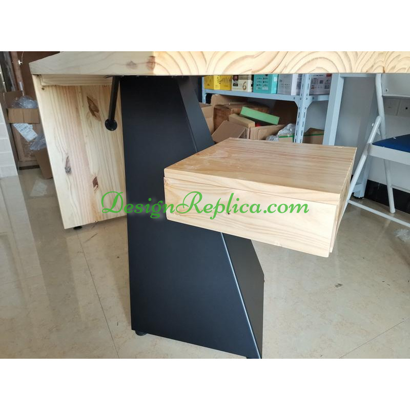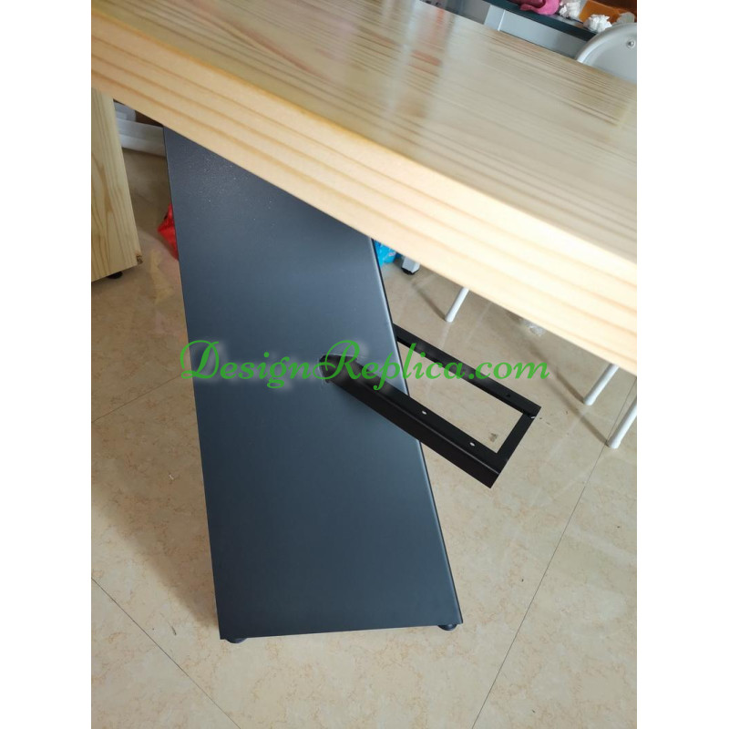 Made of geniune solid pinewood NOT average solid wood, in Natural Maple finish and steel leg in black color. Size is 140*85*75cm for this offer. But other sizes are available from 120cm in length to 300cm in length, and we can customize any size as per your request. You can also choose different colors for the wood, please refer to the color swatch in the product pictures and tell us if you want to customize the color. The drawer can be removed, you can find pictures of the comparison of this desk with the drawer and without the drawer.