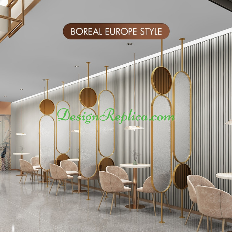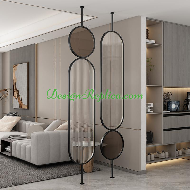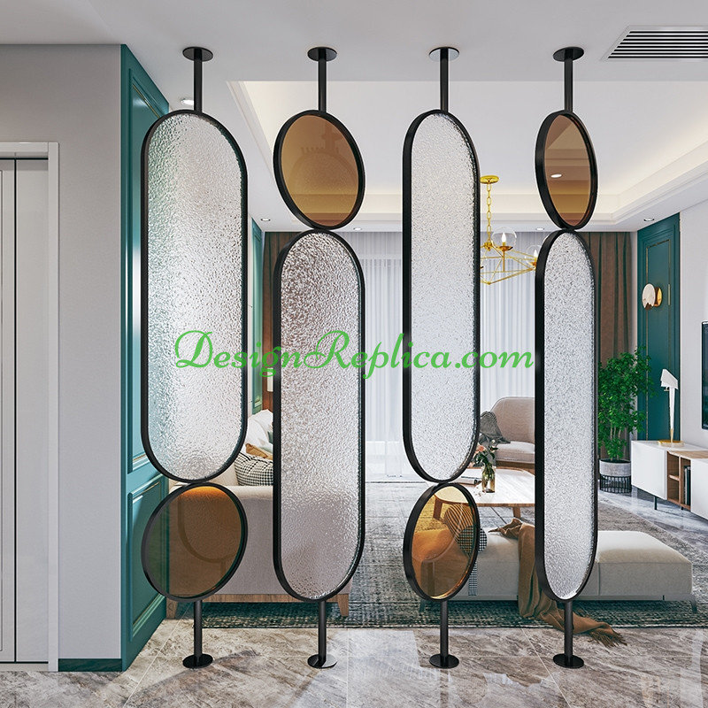 Custom Stainless Steel Screen Modern Minimal Restaurant Oval Rotatable Living Room Iron Glass Partition