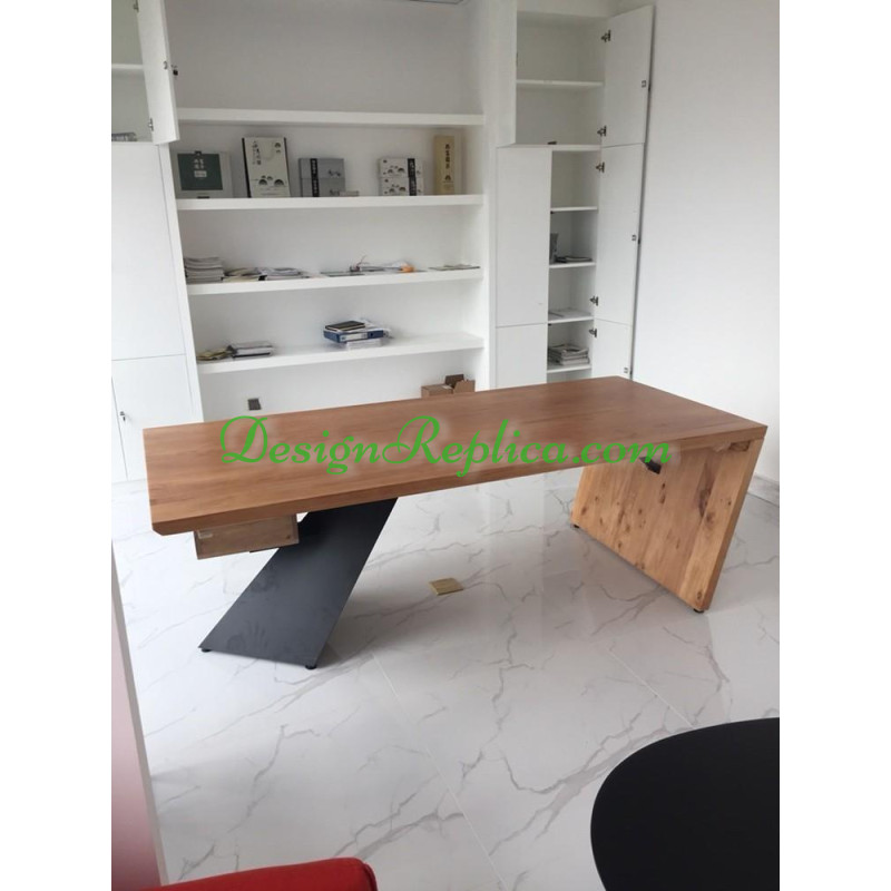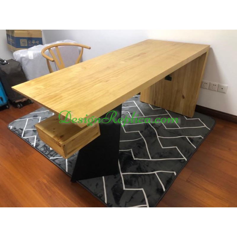 A unique style of office desk. Made of either average solid wood or genuine solid wood or whole log of solid wood. With a steel leg which can be painted into black or golden color. Various colors available for the wood. Please refer to the color swatch picture in the product details and choose the color you want. The drawer can be removed, you can find pictures of the comparison of this desk with the drawer and without the drawer. There are at least 8 sizes. Size 1: 140*65*75cm, size 2: 160*70*75cm, size 3: 180*70*75cm, size 4: 200*85*75cm, size 5: 220*90*75cm, size 6: 240*100*75cm, size 7: 260*100*75cm, size 8: 300*100*75cm. We can also customize other sizes with additional costs. Please contact us if you want customization.