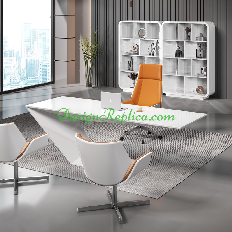 This minimalist modern office desk is crafted from white lacquer and comes in a range of simple and stylish designs. All models feature a 0.75 meter height, making them suitable for both professional and home workspaces. The sizes range from 1.2m*0.6m to 2.4m*0.9m. Please refer to the product pictures for the exact size of each part. A Multimedia cable box is optional. The clean and minimalist look is ideal for an up-to-date, sophisticated office.